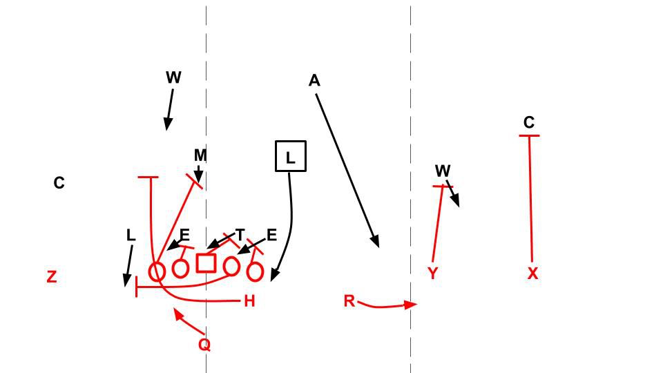 If the DE tries to take away the QB outside then the offense is running zone downhill with one of their tackles getting a free run at a linebacker. If the DE spills the ball then defenders at fairly shallow depth are running laterally to try and get into position. It’s pretty common for a spring to leak and then that deep safety has to make an open field tackle to prevent a touchdown.