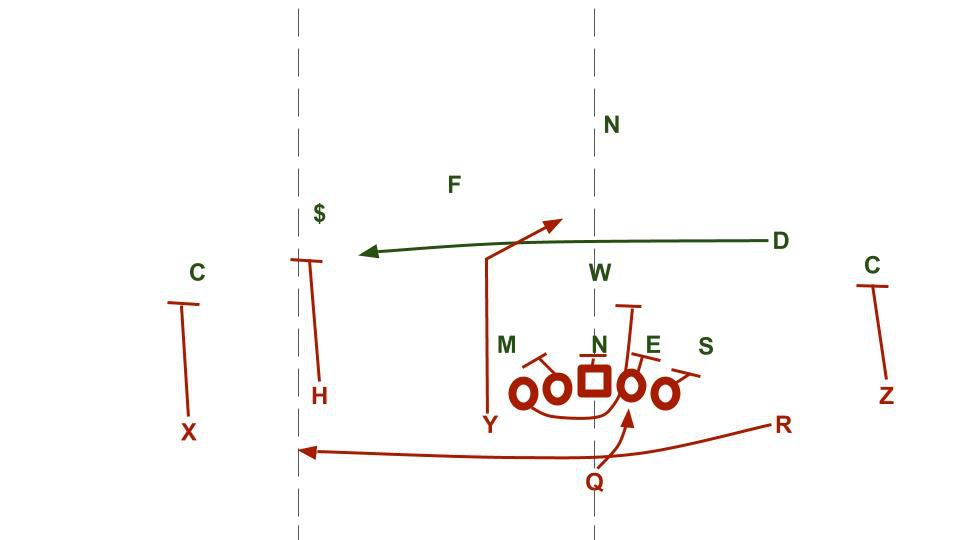 The Huskers would flex out their TEs to try and block the star but to no avail, Dowell would fight to blow up the play and allow the Spartans to rally to the ball.